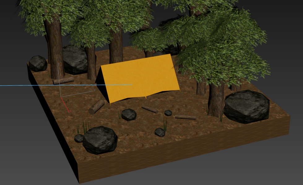 a fully textured low poly 3D model of a campsite made in 3DsMax